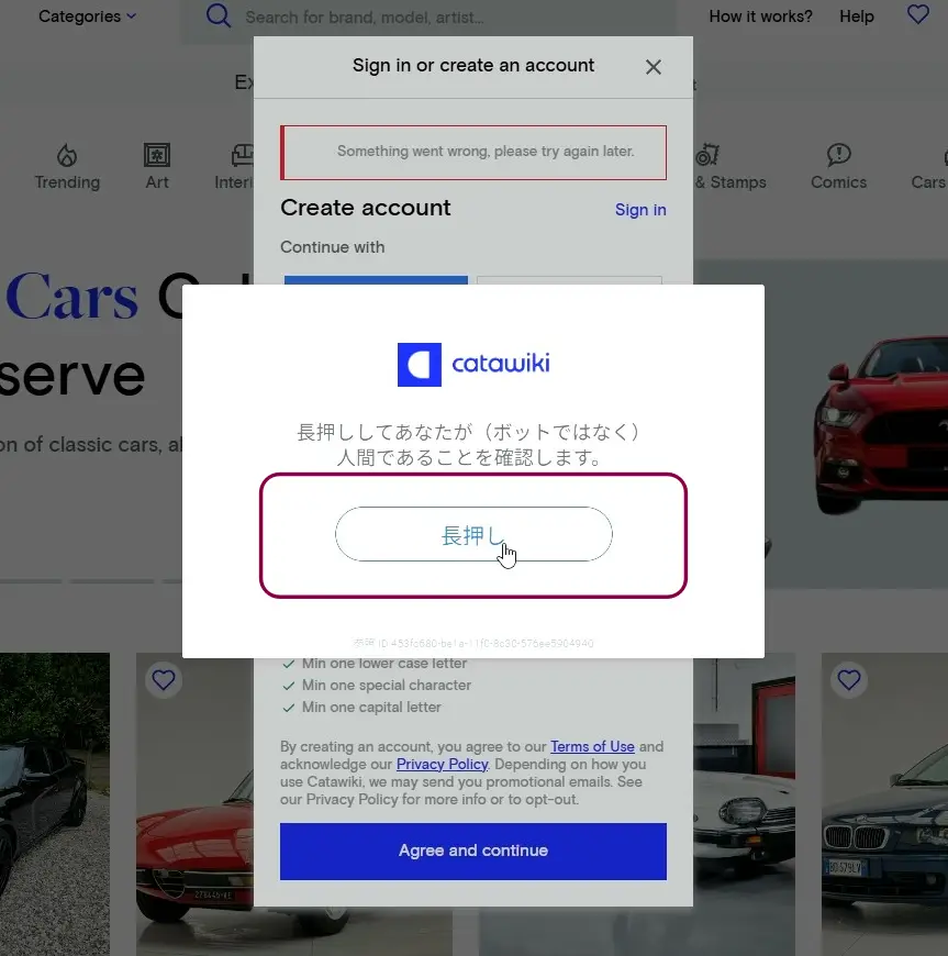 これは人間かどうかを確認するためのものなので、画面の「長押し」ボタンを指示通り長押ししましょう。