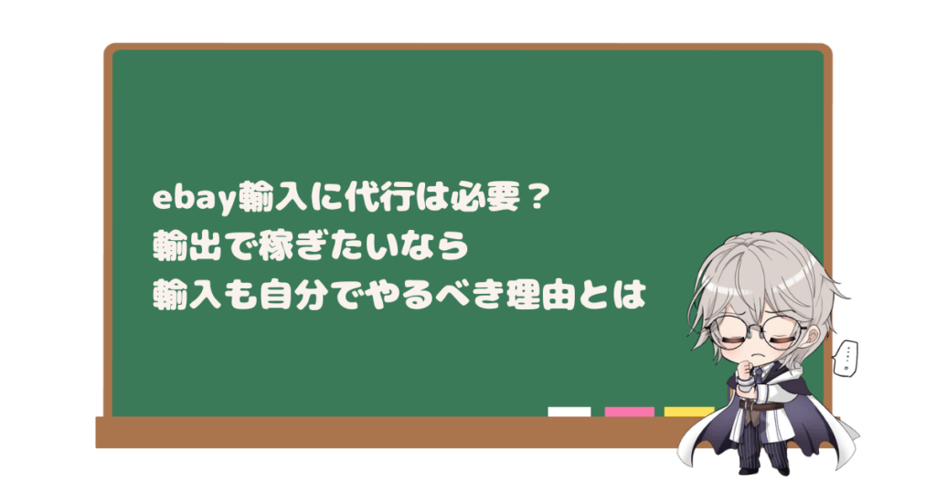 「ebay輸入を始めたいけど、英語や手続きが不安だから代行を使おうかな……」と迷っている人も多いでしょう。 たしかに輸入代行は非常に便利なサービスです。 しかし、あなたが将来「ebay輸出の副業で稼ぎたい」というのなら、代行に頼るのは少し待ってくだ... -