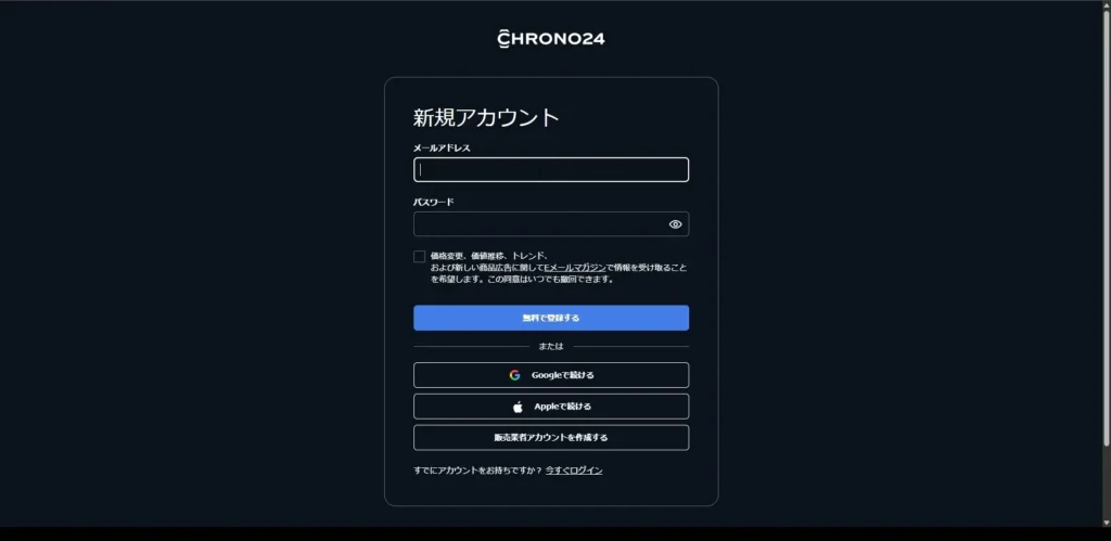 Chrono24にアカウント登録する場合、2つの方法があります。