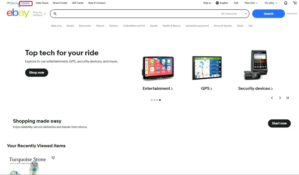 eBayアカウントを開設するためには、まずはPCでebay.comのホームページを開きます。