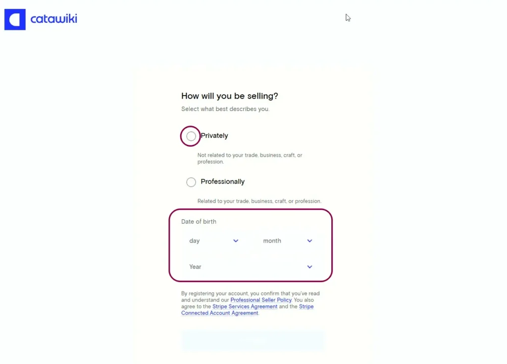 catawikiのセラーアカウントを取得するにあたり、はじめにセラーアカウントの種類を選ばないといけません。
